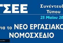 ΣΥΝΕΝΤΕΥΞΗ ΤΥΠΟΥ ΚΑΙ ΣΥΓΚΛΗΣΗ ΟΡΓΑΝΩΝ ΓΣΕΕ ΓΙΑ ΕΡΓΑΣΙΑΚΟ ΝΟΜΟΣΧΕΔΙΟ