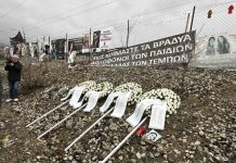 κατάθεση στεφάνων στον τόπο του δυστυχήματος στα ΤΕΜΠΗ από τα προεδρεία των Σωματείων και ΠΟΣ -ΜΣΤ.